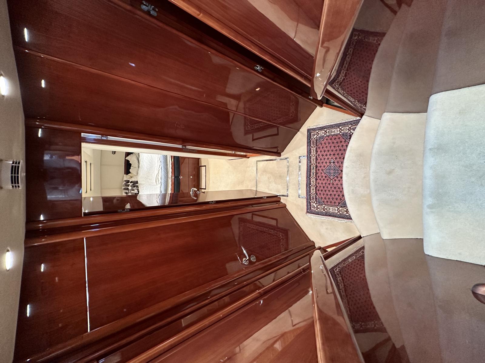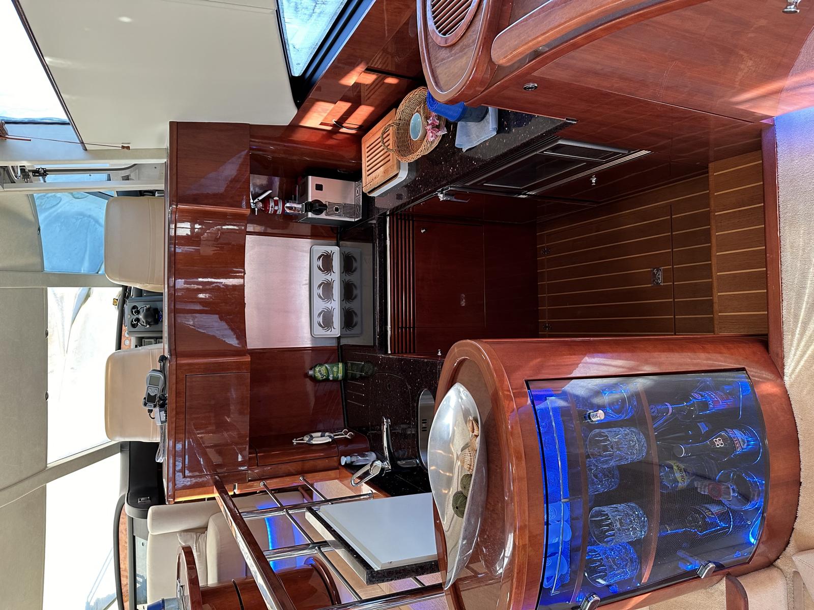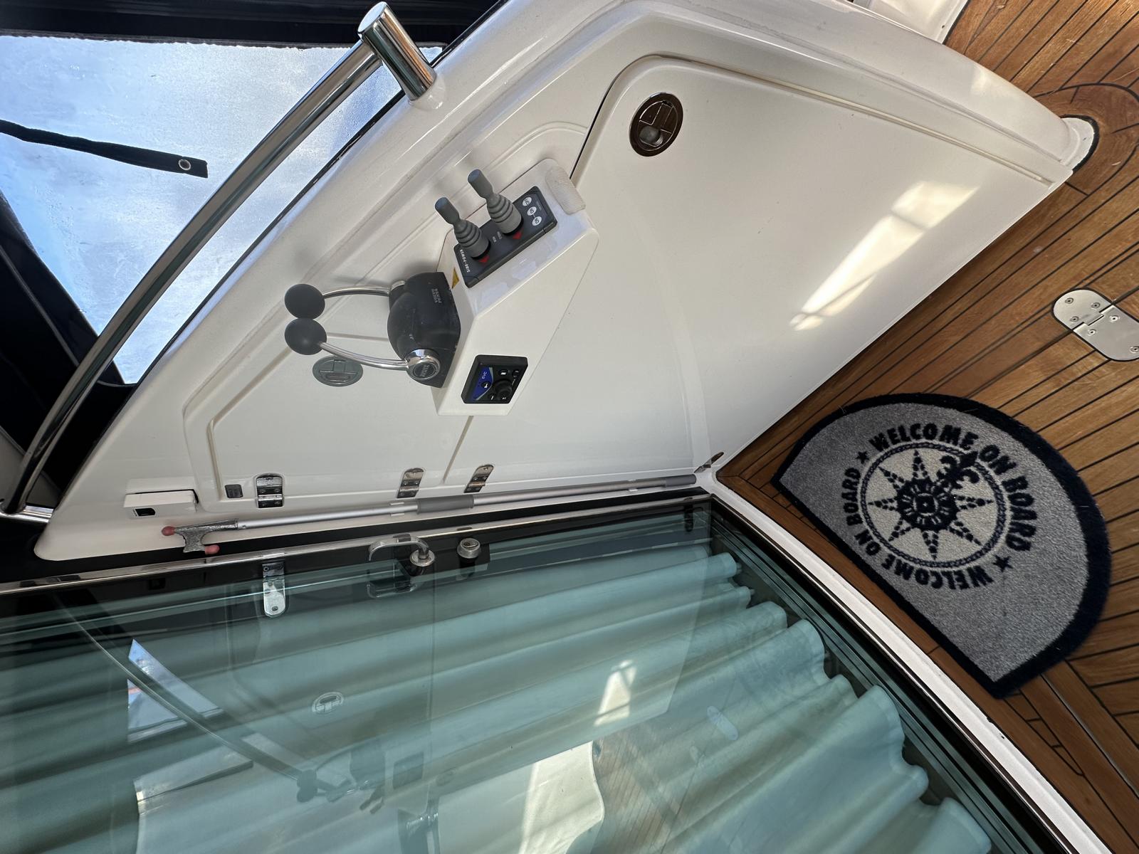 Rinnovo completo del teak (2022). Pavimento esterno, pozzetto, piano calpestio fly e camminamenti laterali in teak. Plancetta di poppa fissa. Tonneggi di poppa.