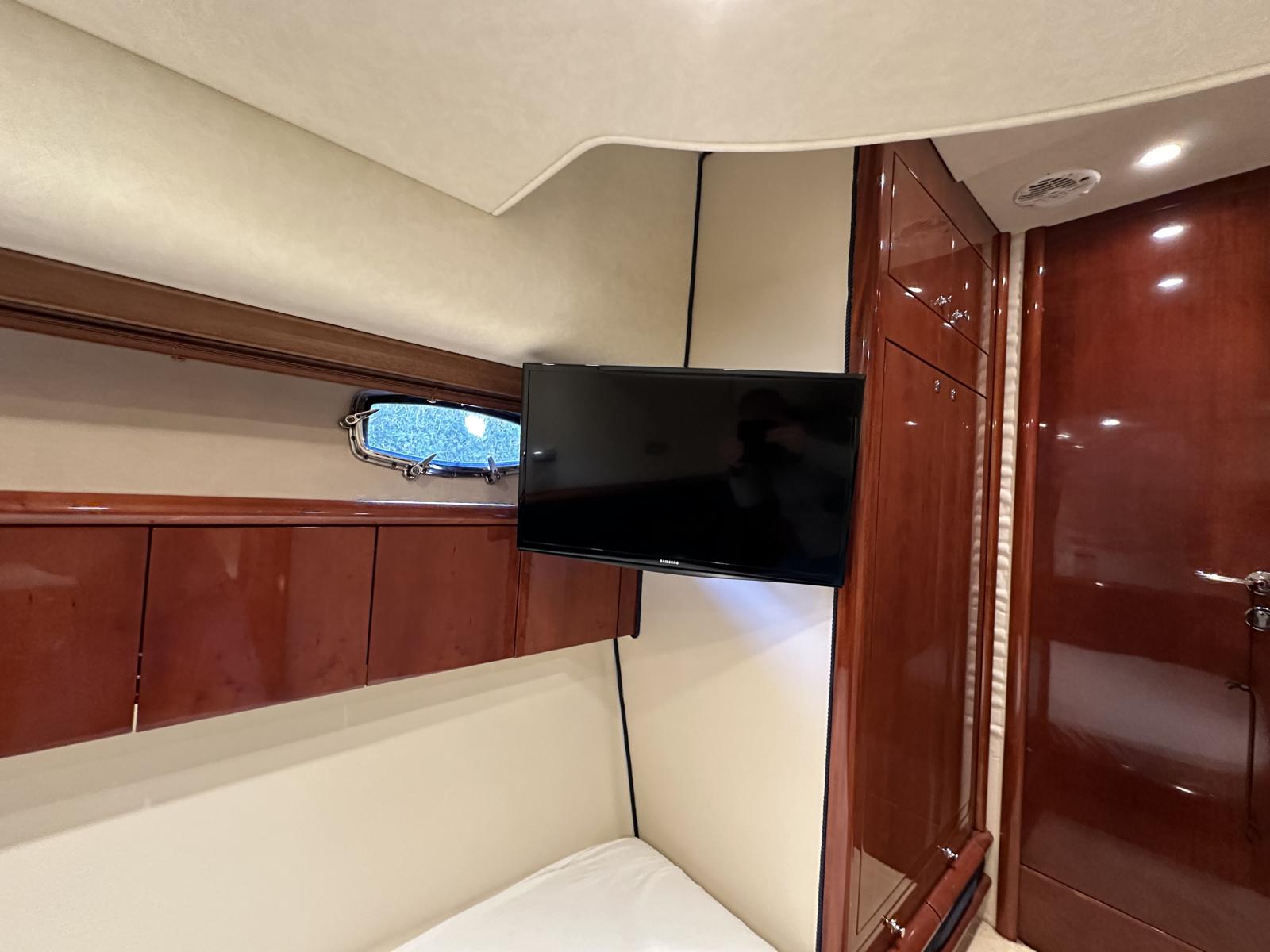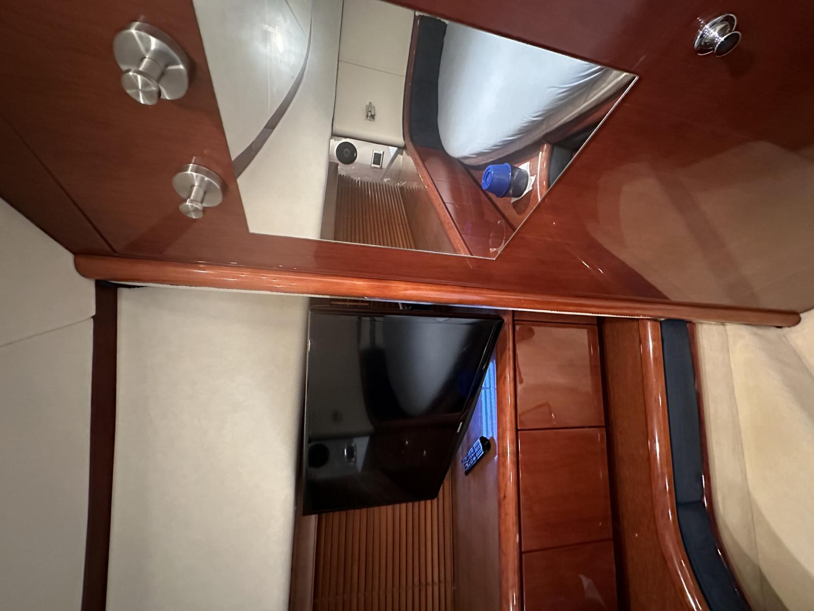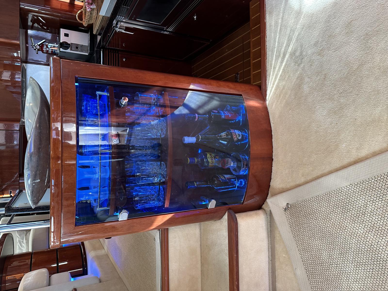 Scafo e tuga in vetroresina. Legni interni in mogano; pavimento cabine misto moquette e mogano. Sedili e divani in pelle. Tv in tutte le cabine; televisore nel salone.