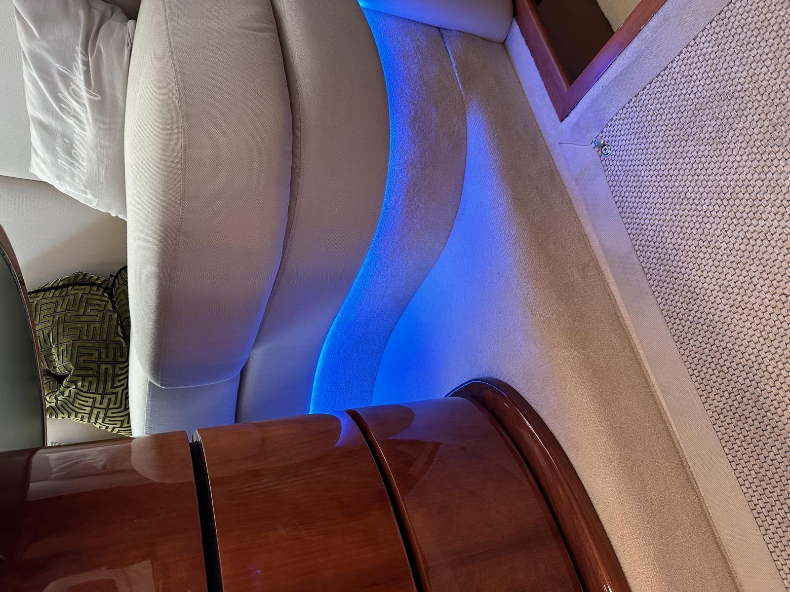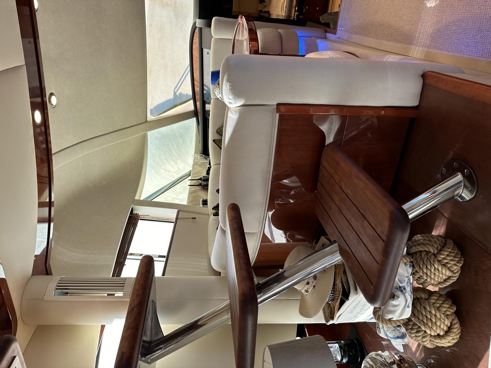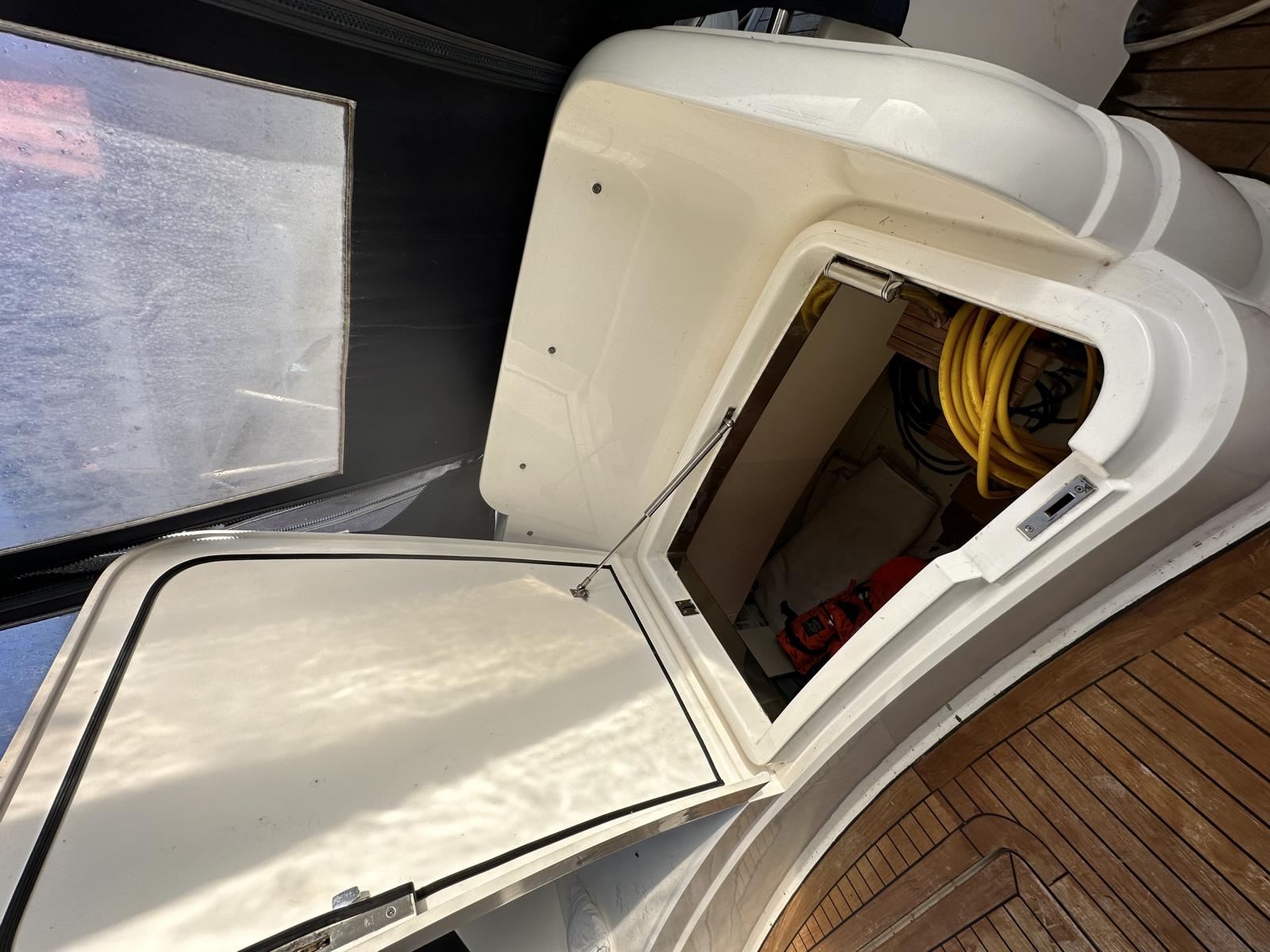 Cuscini per sedute pozzetto e flybridge; teli copri finestre laterali, copri consolle e copri sedute. Tavolo pozzetto, doccia esterna; piattaforma bagno. Salvagente.