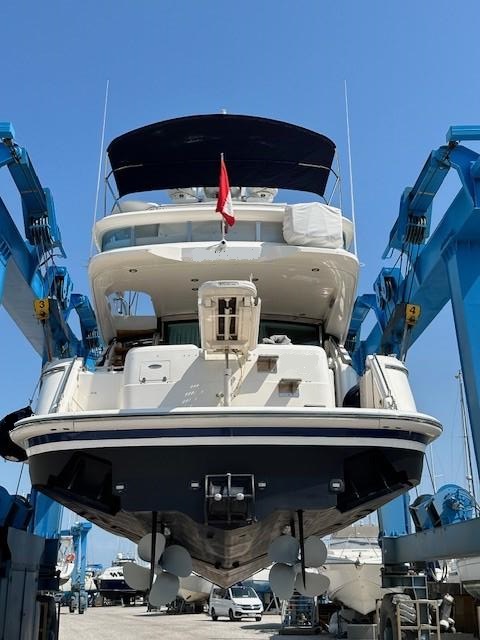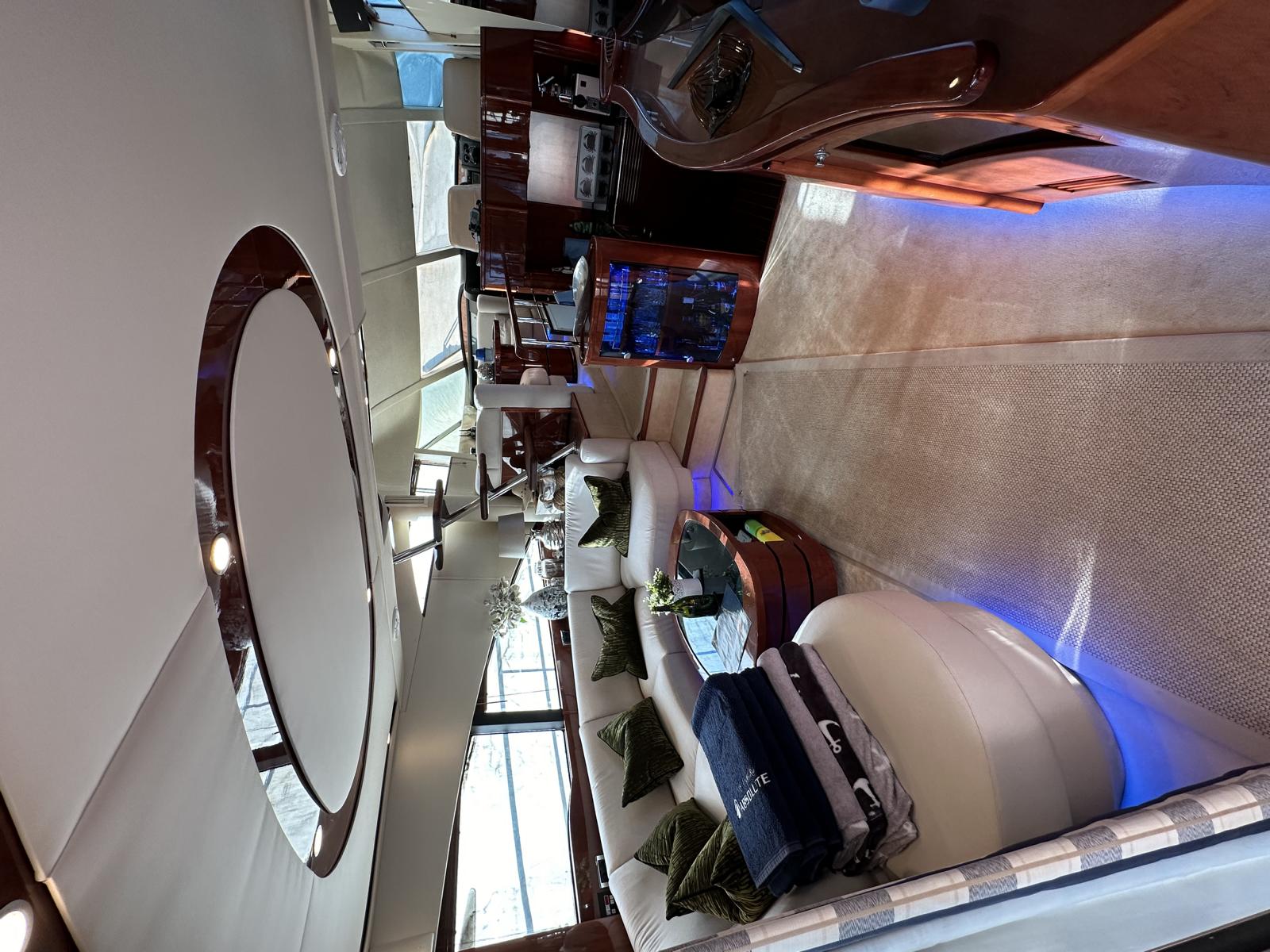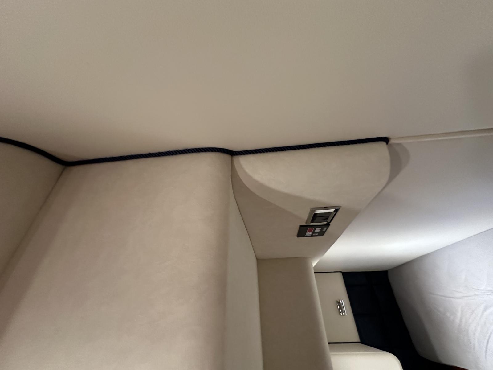 Cuscini per sedute pozzetto e flybridge; teli copri finestre laterali, copri consolle e copri sedute. Tavolo pozzetto, doccia esterna; piattaforma bagno. Salvagente.