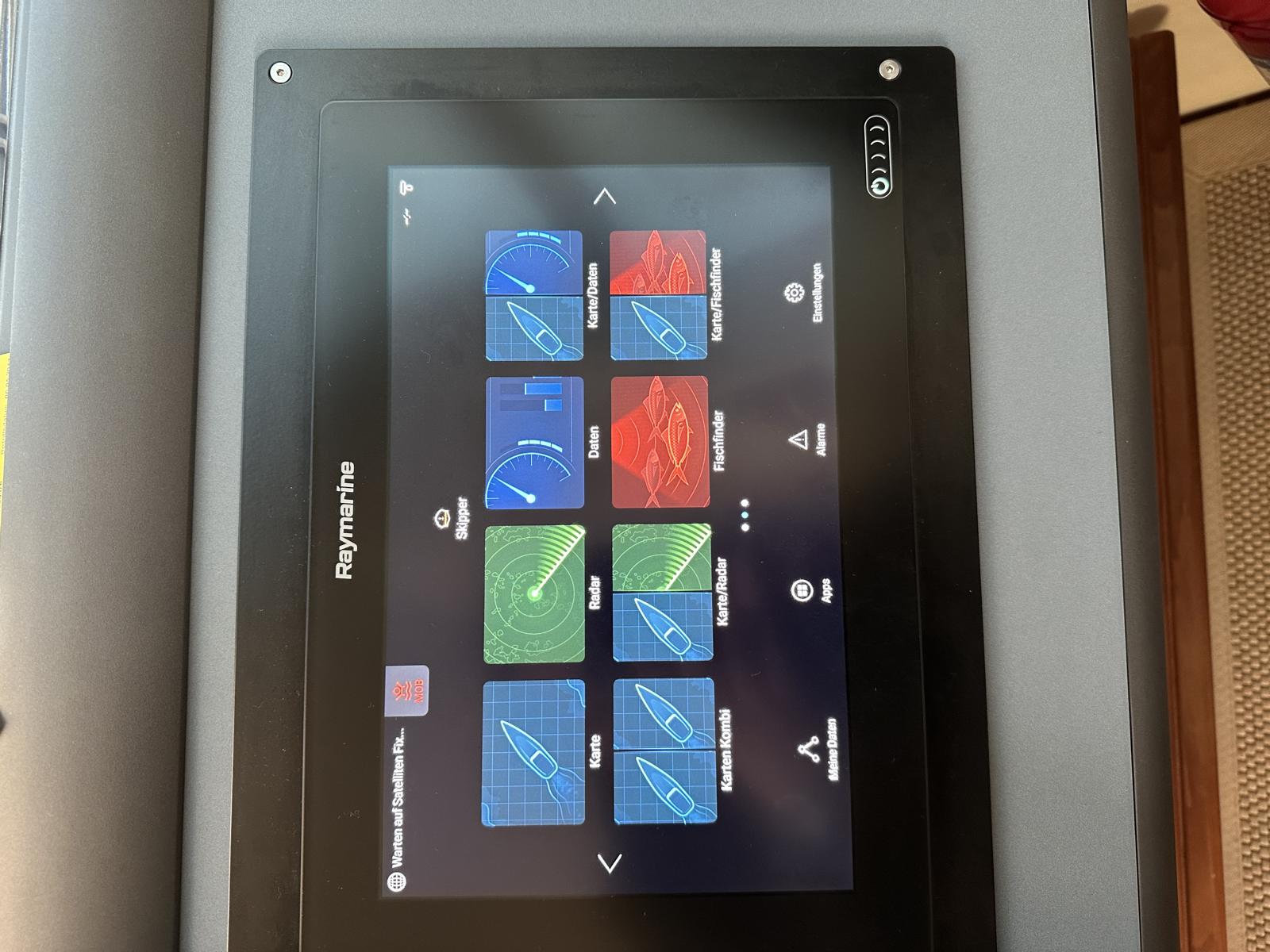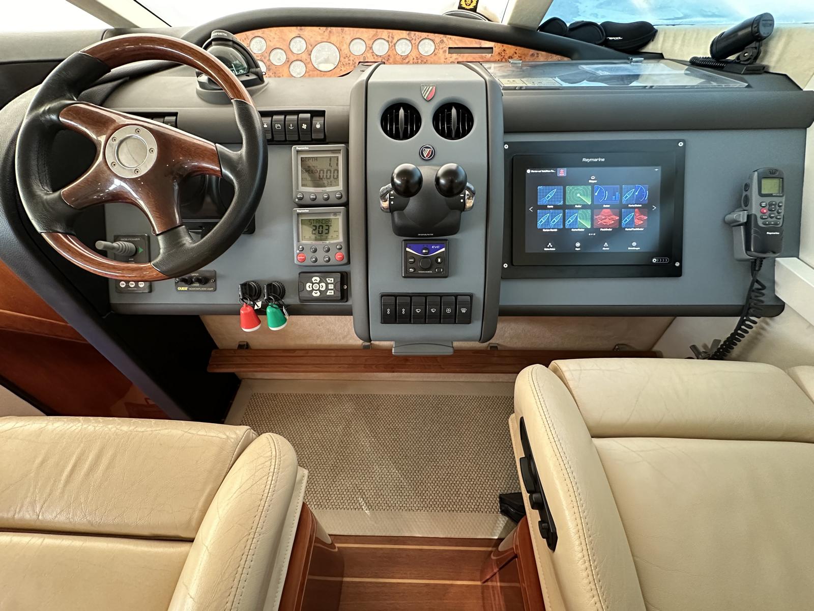AIS, antenna radar, log; plotter con GPS, radar ed ecoscandaglio Raymarine; computer di bordo Raymarine. Angolo di barra, autopilota, bussola, VHF, radio e lettore CD, autoparlanti.