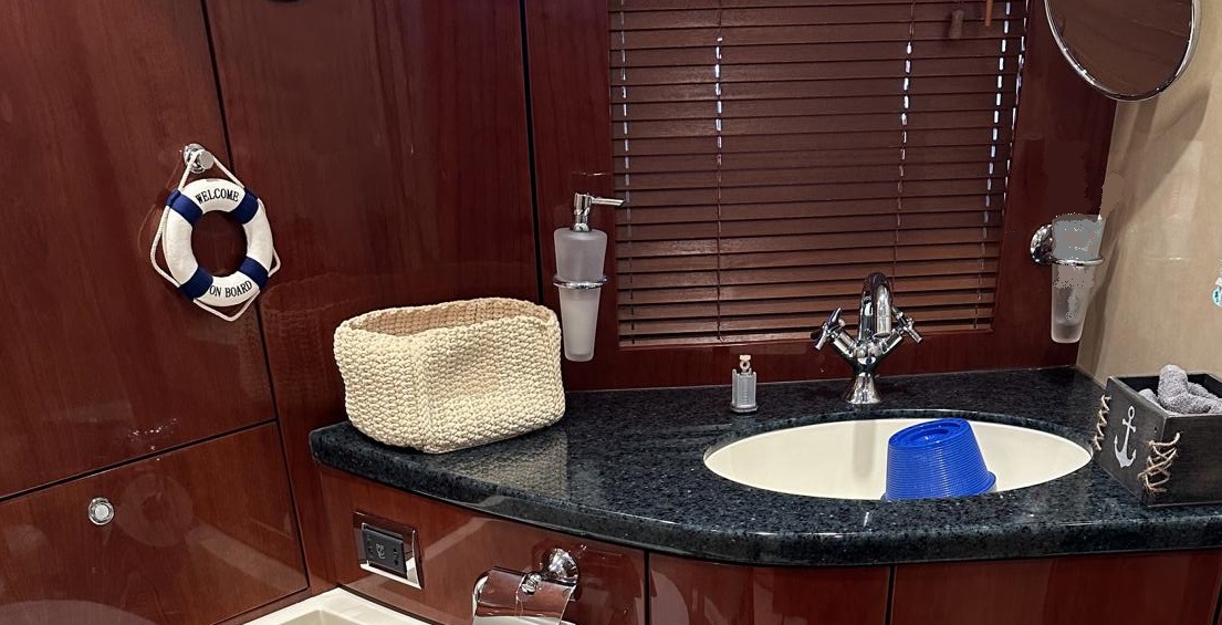 2 cabine matrimoniali, 1 cabina doppia con letti singoli, 2 bagni con doccia, 1 cabina marinaio.