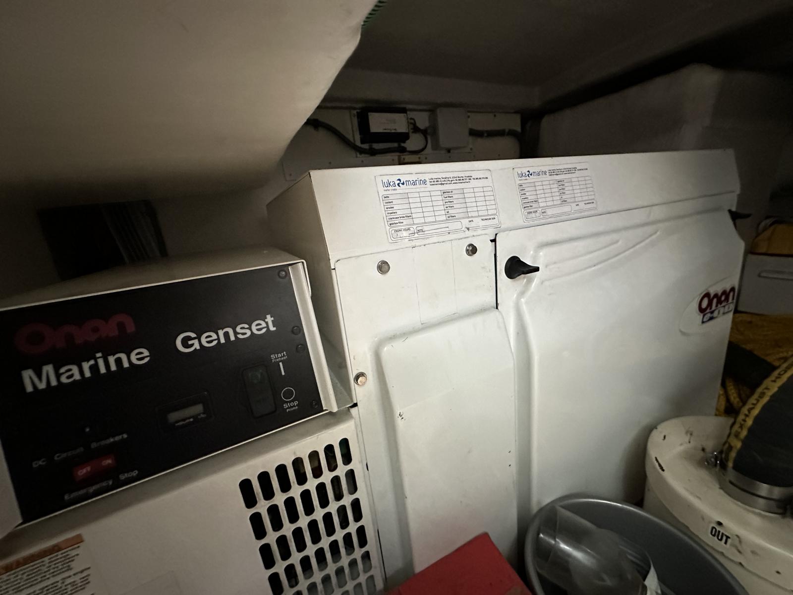 Elica di poppa, elica di prua. Autoclave, pompe di sentina automatiche; impianto antincendio Seafire. N. 8 batterie (4 per motori e 4 per servizi; 2022), caricabatterie, inverter.