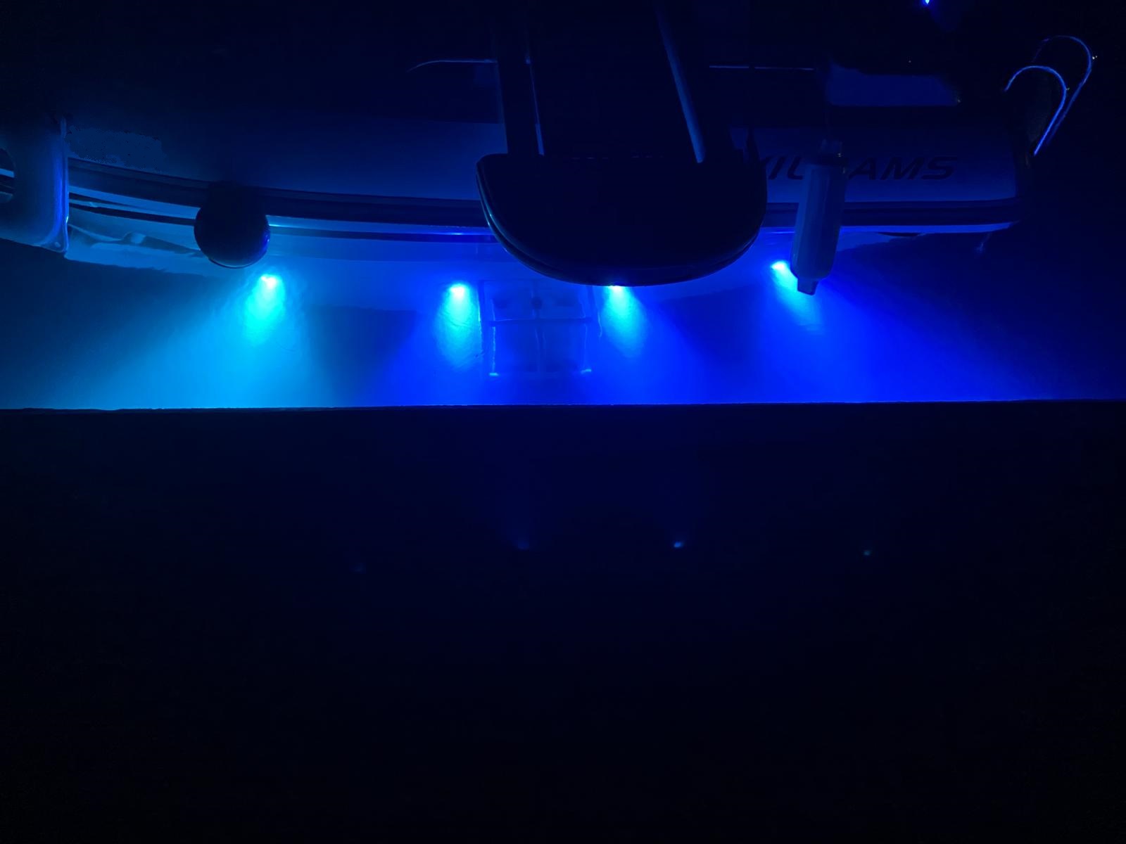 Passerella idraulica Besenzoni; flap idraulici; ancora, salpancore elettrico, lavaggio catena. Luci di cortesia, luci subacquee (colori regolabili), faro orientabile.