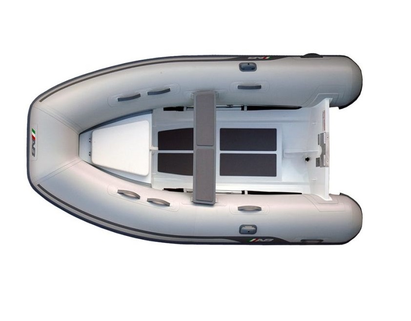 Il pavimento è dotato di materiale antisdrucciolo in gomma e la chiglia è dotata di protezione in gomma per tutta la sua lunghezza, completa la dotazione anche un gavone di prua